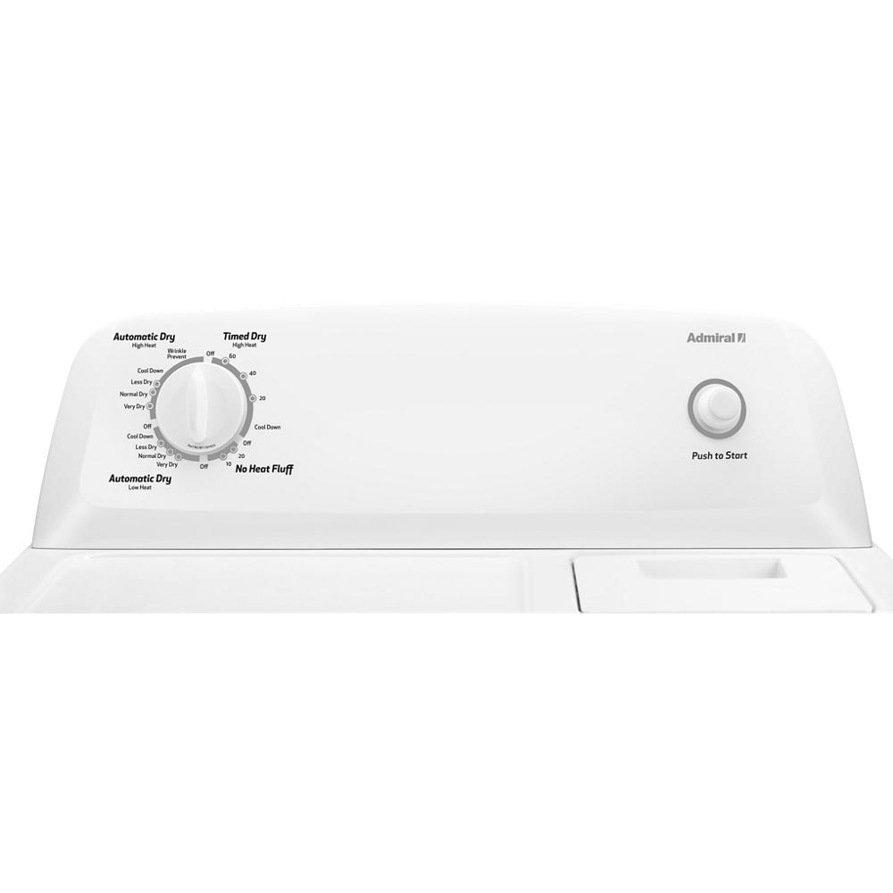 - A 6.5 cu. ft. capacity means there's room to dry loads from the matching Admiral brand washer. More space helps you dry more quickly, as well.