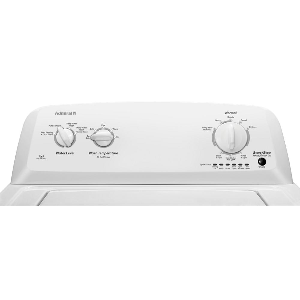 This 3.5 cu. ft. Admiral® Top-Load Washer provides a thorough clean thanks to the Wash-Action Agitator, which uses two, independently-moving pieces to provide plenty of wash movement. The Deep Water Wash Option fills the tub with more water during the wash and rinse cycle. Plus, the washer's sturdy Porcelain Tub helps protect clothes from snagging, while the Large Capacity lets you get the most out of your loads.